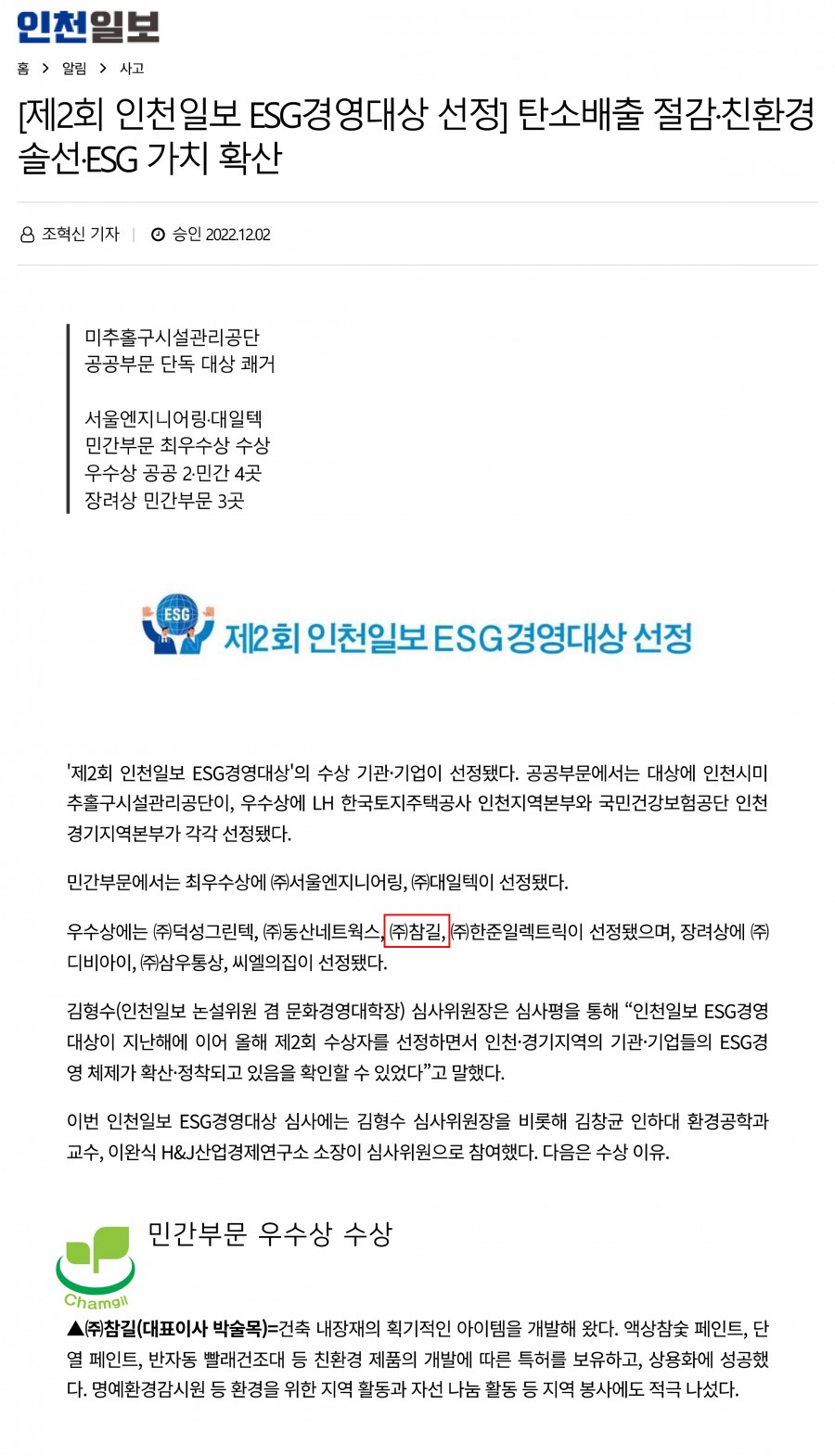 인천일보 제2회 ESG경영대상 민간부문 우수상 수상 페이지 정보 작성자 최고관리자 작성일22-12-07 15:08 조회24,462회 댓글0건 관련링크 본문 인천일보 제2회 ESG경영대상 민간부문 우수상 수상 댓글목록 등록된 댓글이 없습니다. 이전글 다음글 목록