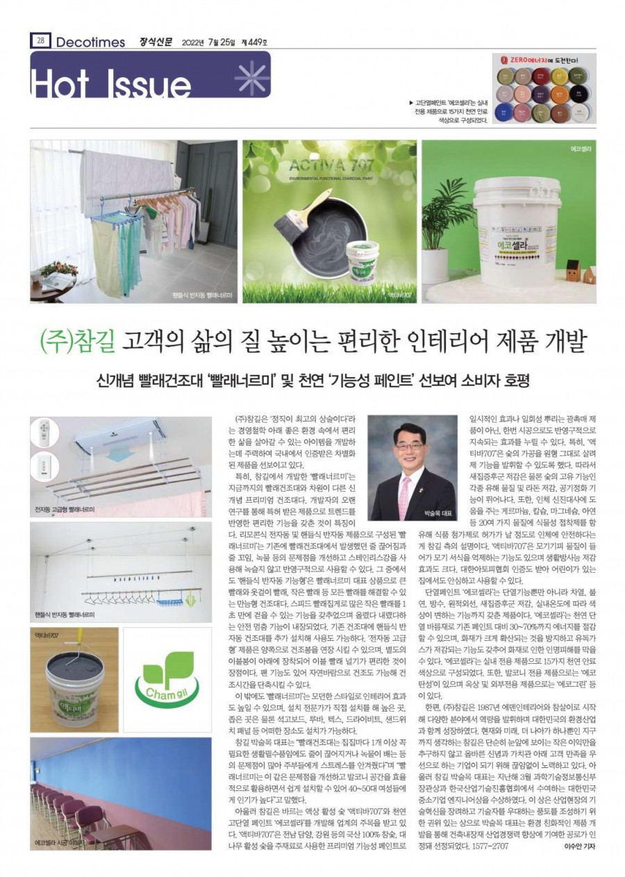 참길, 고객의 삶의 질 높이는 편리한 인테리어제품 개발 (장식신문 제449호) 페이지 정보 작성자 최고관리자 작성일22-07-20 15:39 조회26,216회 댓글0건 관련링크 본문 참길, 고객의 삶의 질 높이는 편리한 인테리어제품 개발 (장식신문 제449호) 댓글목록 등록된 댓글이 없습니다. 이전글 다음글 목록