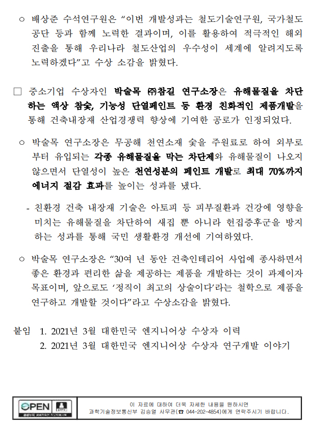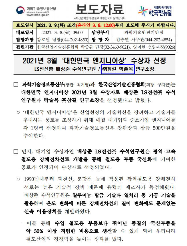 3월 대한민국 엔지니어상 (과힉기술정보통신부 보도자료) 페이지 정보 작성자 최고관리자 작성일21-03-17 10:30 조회31,446회 댓글0건 관련링크 본문 3월 대한민국 엔지니어상 (과힉기술정보통신부 보도자료) 댓글목록 등록된 댓글이 없습니다. 이전글 다음글 목록