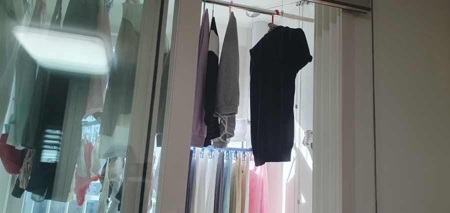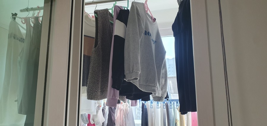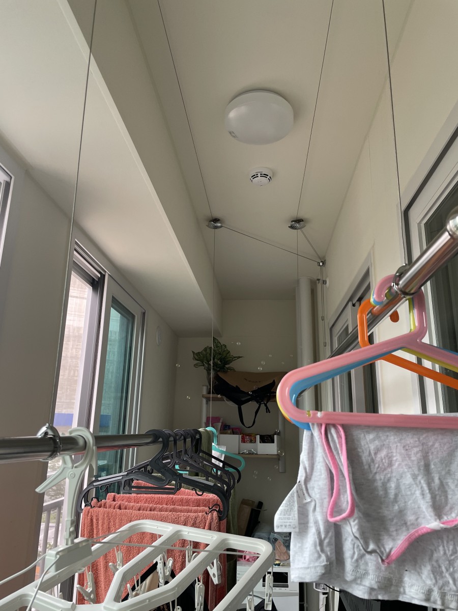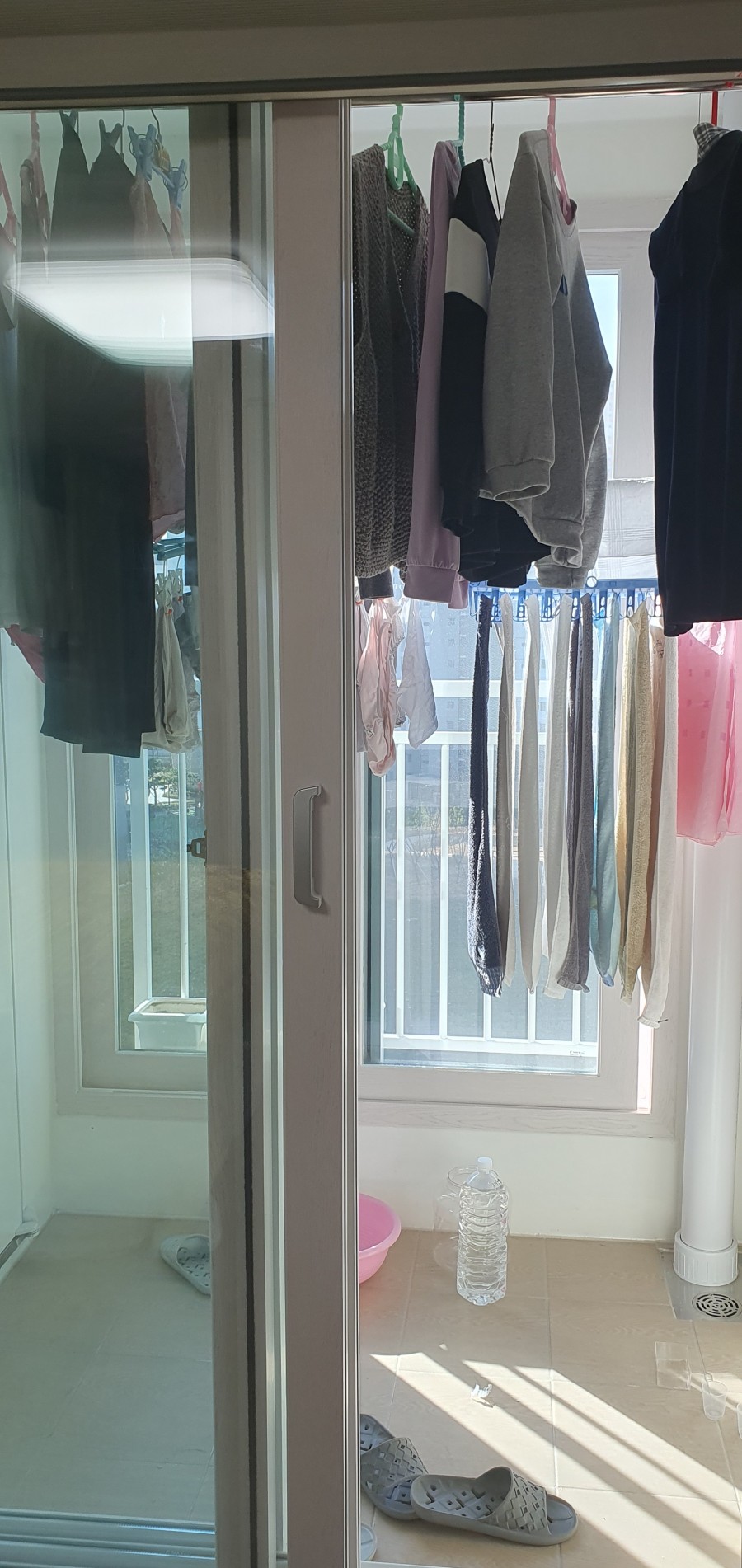 발코니 걸어다니는 데에 방해되지 않고, 빨래 널기도 걷기도 정말 편하고, 빨래 간격을 조절할 수 있어서 빨래가 빨리 말라요. 너르미 최고입니다. ^^